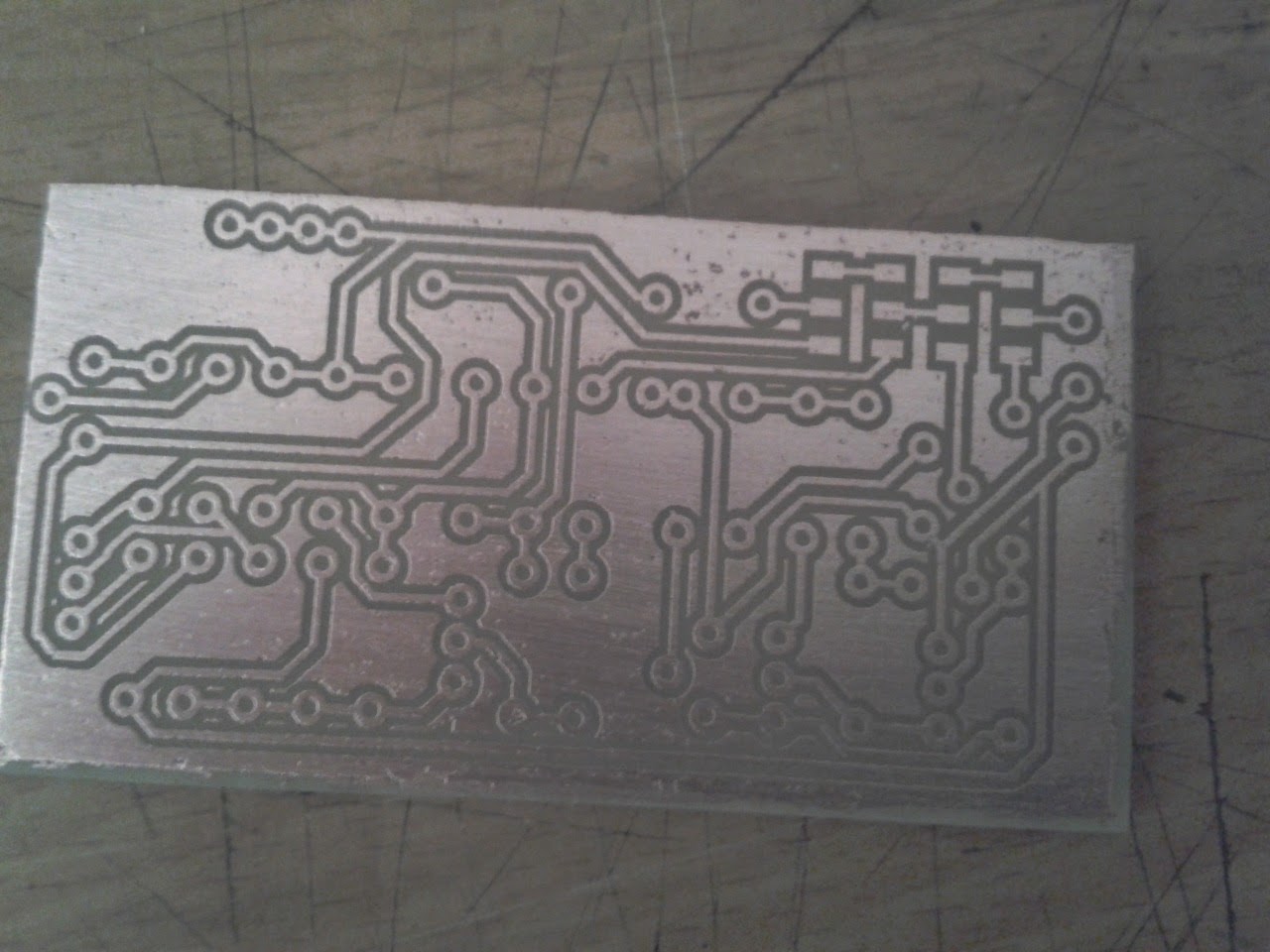 The Ferric Chloride yesterday evening, so we got on with etching our multi-effect pedal board, made with the (much cheaper) press-n-peel alternative. The result was pretty impressive. In short, the cheaper alternative works as well as the real thing for us. Which is just as well, as we've invested in about 50 sheets of the stuff!